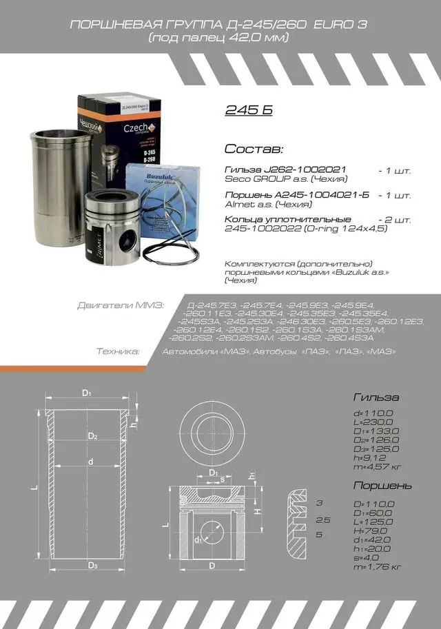 Поршневая группа Д-245/260, Евро 3 (палец 42 мм), Комплект 245 Б Ch